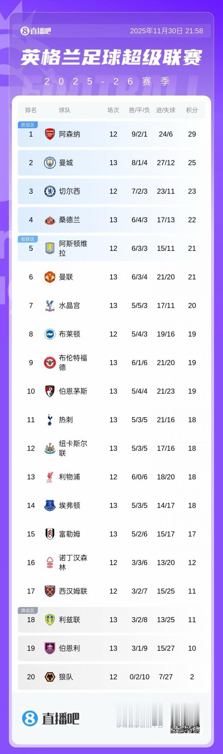 本场过后,曼联从第12蹿升至第6,仅落后第四的桑德兰1分!
