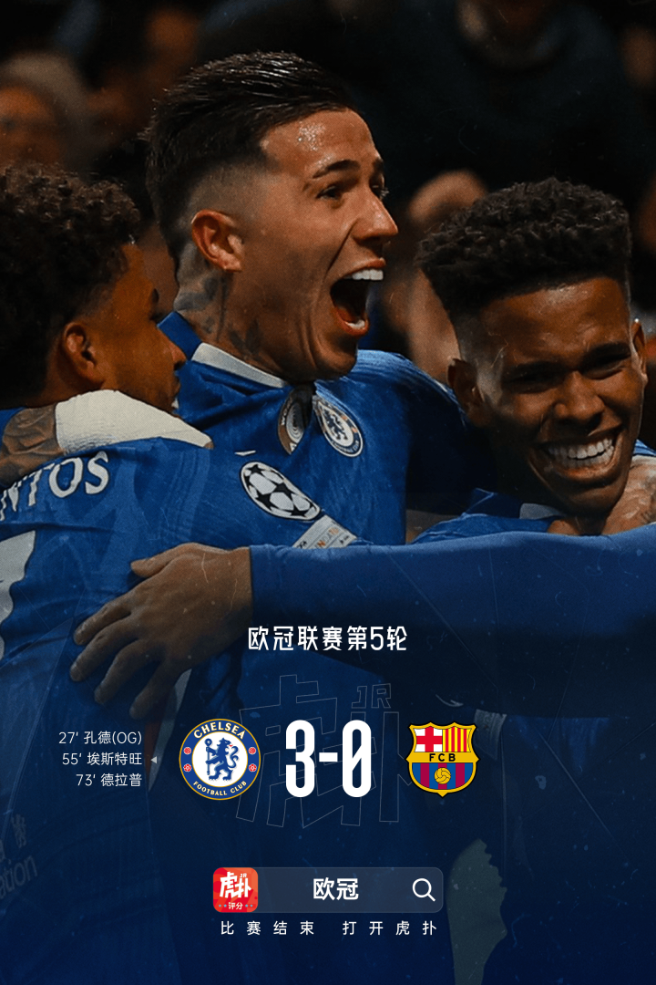 虎扑11月26日讯本轮欧冠,切尔西主场3-0巴萨。佩德罗-内托赛后社媒晒照庆祝本场胜利,他写道: