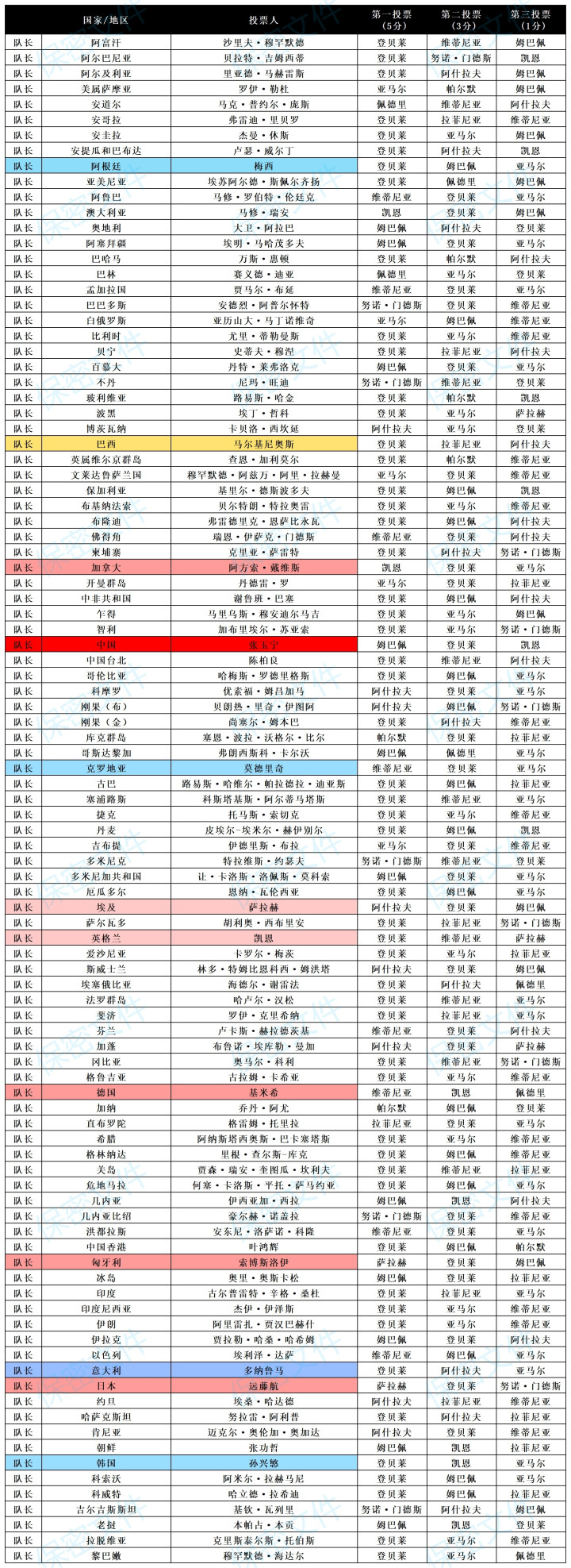 超300人首选登贝莱! FIFA投票详情全公开: 主帅+队长选择一文全览