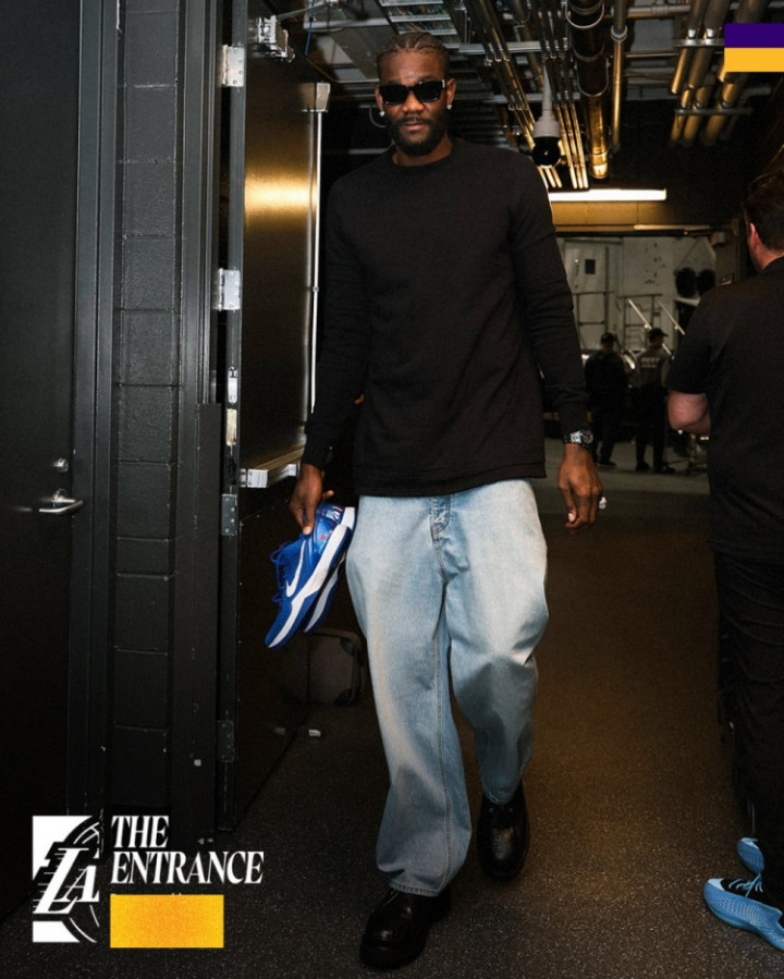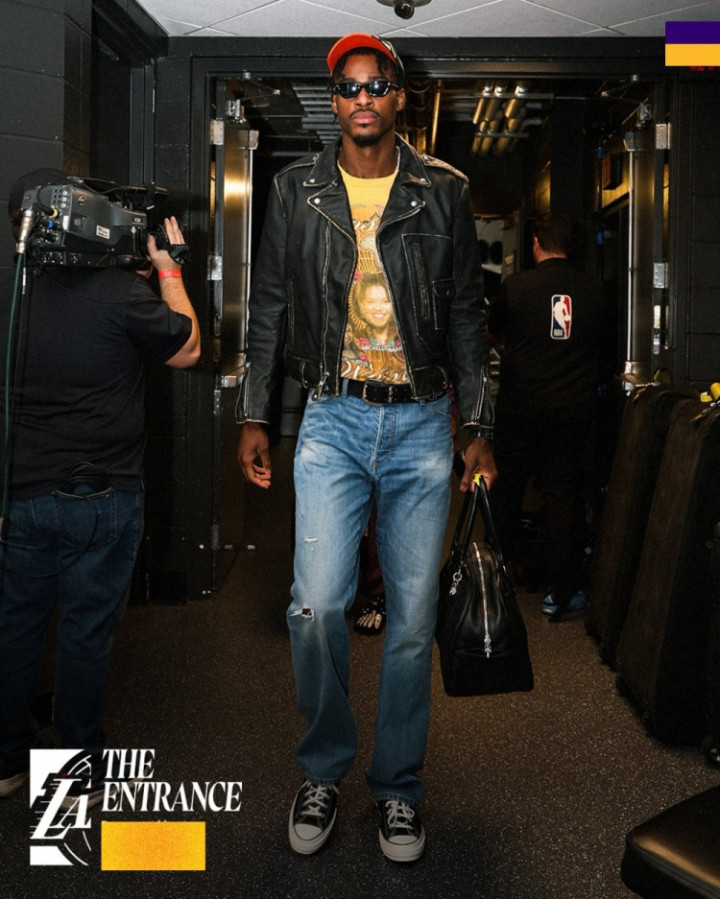 湖人入场穿搭: 里夫斯全黑运动装气场拉满 艾顿&范德彪酷炫墨镜