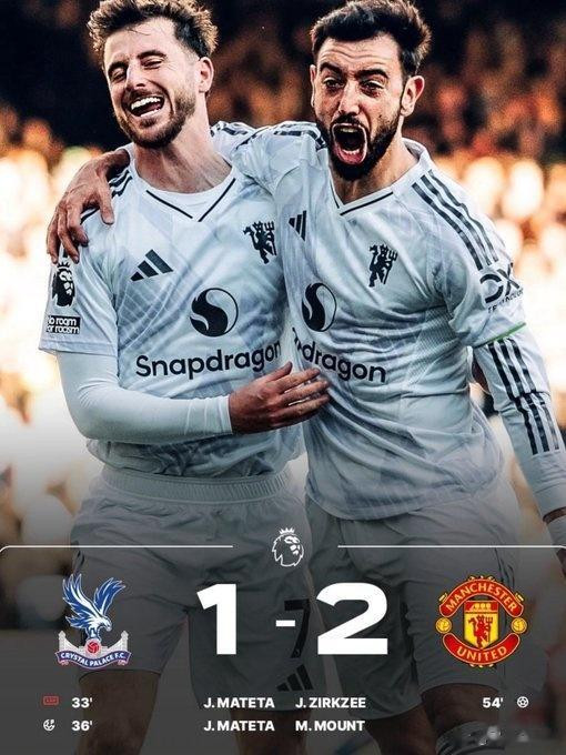 输了场面赢了结果,曼联本季首次在伦敦带走三分!水晶宫上半场虎虎生风,可惜错失太多能打进第二个入球的机会。他们下半场体能下滑对抗强度跟不上,特别是边路威胁大大降低。对方犯规多,定位球的利用曼联找到感觉了,两个看上去不是太好的机会,齐尔克泽与芒特的久违进球帮助球队赢球。但无论阿莫林还是看台上的俱乐部高管都没有喜形于色,球队想在下半季保持竞争力,冬窗球队在中场和边路都有引援的必要。