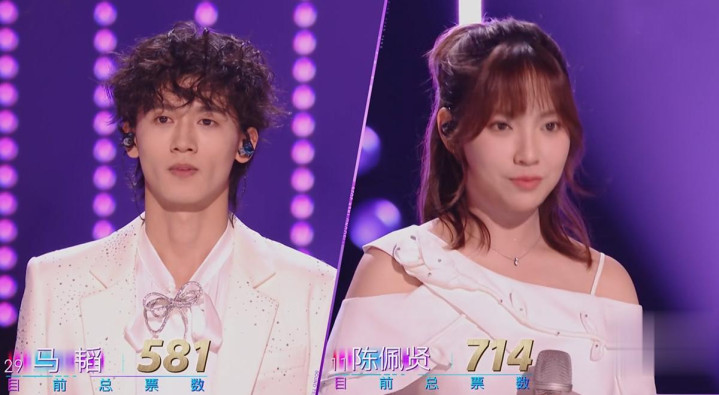 第二组对决,马韬想要表达得太多,反而让整个人完全紧绷起来,眼神和脖子都僵硬了,自己该有的实力没有发挥出来。陈佩贤相对流畅一些,但选曲和个人特色不适配,与乐队的配合让人出戏。
