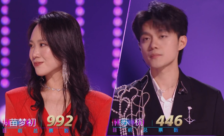 第五组对决,苗梦初的《野心家》展现了自己超强的舞台掌控力,完成度高,有爆发力。苏杭的《我用所有报答爱》选曲大胆,声音有质感,但能力驾驭不起来,演唱中出现了明显的失误。