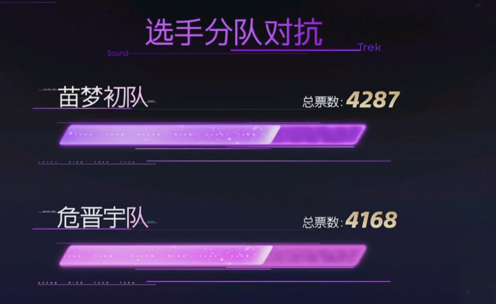 六轮1V1对决过后,危晋宇队拿到4168票,苗梦初队拿到4287票,苗梦初队笑到了最后,全员成功晋级全国10强。